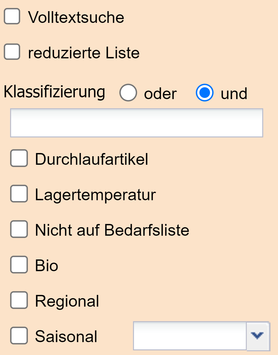 Hier kann nach der Bezeichnung des Grundproduktes gesucht werden.