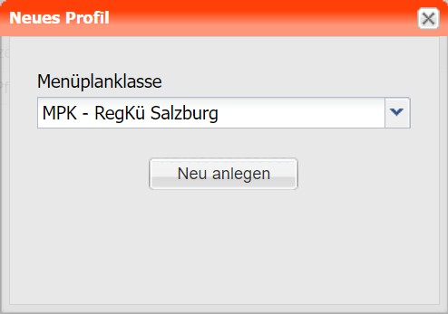 Im ersten Schritt muss man sich für eine Menüplanklasse entscheiden, auf welches das Profil angewendet werden soll.
