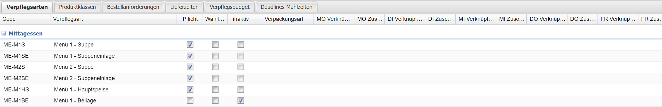 • Aktivieren von Verpflegsarten und deren Verknüpfungen