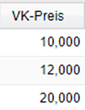 Hier wird der Verkaufspreis je Kalkulationseinheit (Preis je kg, l, Stk, usw.) hinterlegt.