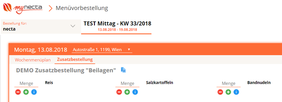 • Zusatzbestellungen zum Wochenmenüplan für mynecta-Benutzer