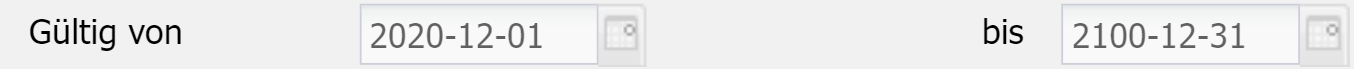 Auswahl des Gültigkeitszeitraumes der Verkaufsliste. Die Verkaufsliste muss z.B. mindestens sieben Tage gültig sein, um in Kombination mit einem Wochenmenüplan verwendet werden zu können.