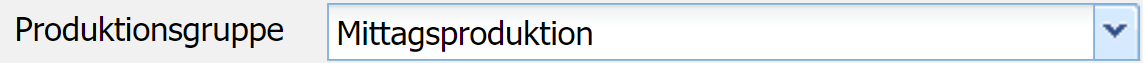 Hier kann die Produktionsgruppe gewählt werden. Zur Wahl stehen die Produktionsgruppen, welche man selbst definiert hat.