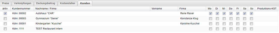 In der Lasche "Kunden" wählt man die Kunden sowie die Wochentage aus, für welche man die Verkaufsliste freischalten möchte: