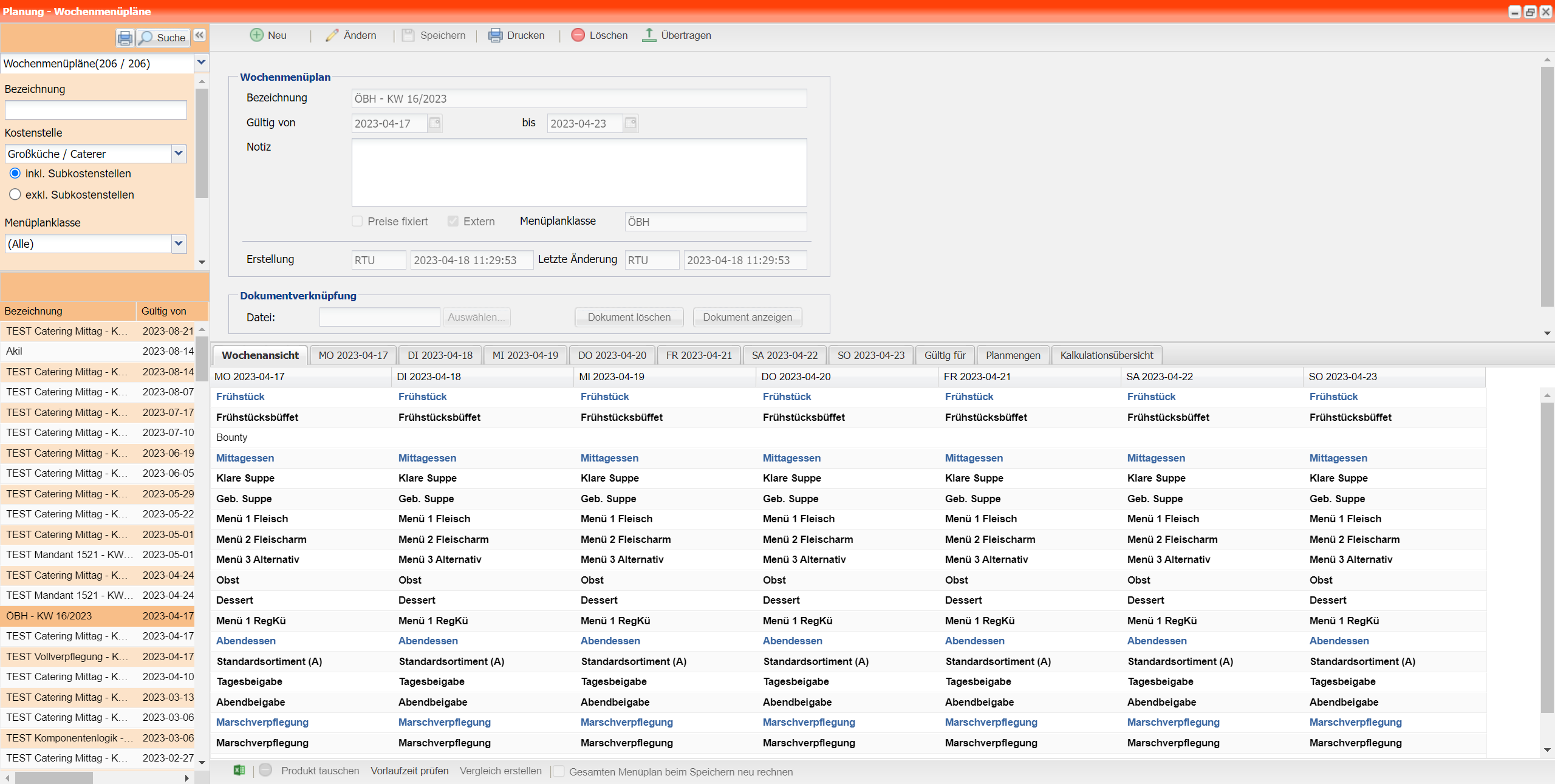 Sie finden Wochenmenüpläne im Modul "Planung", unter dem Menüpunkt "Wochenmenüpläne":